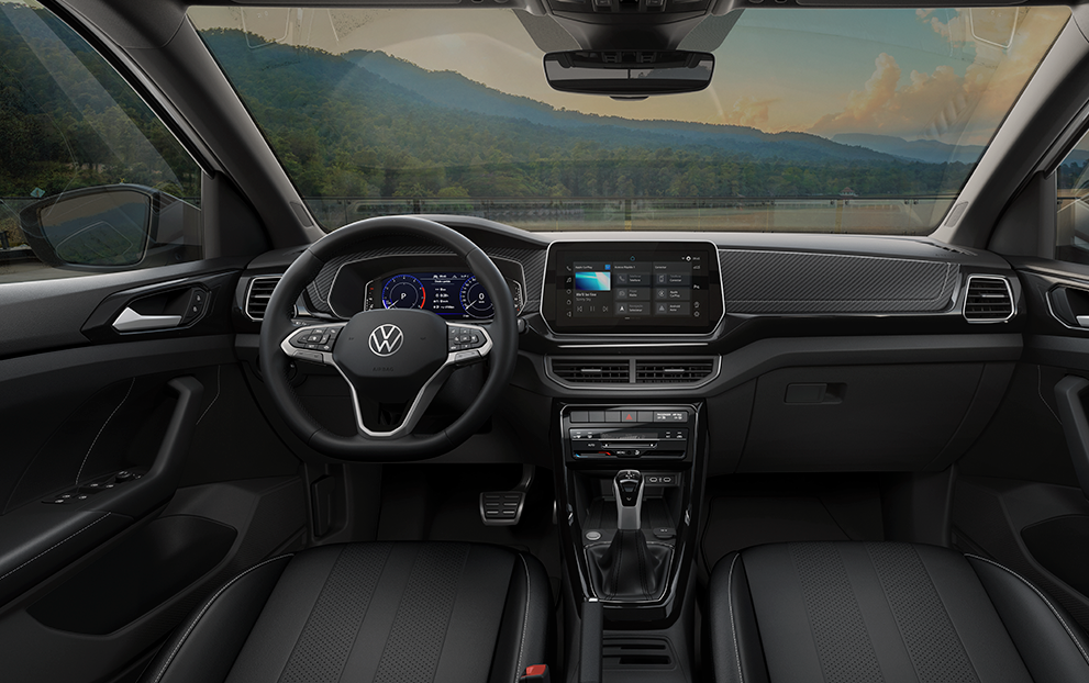 O Novo T-Cross tem o painel com aplique em vinil, que traz muito mais beleza ao interior do modelo. O interior das portas dianteiras tem acabamento soft touch. Tudo foi pensado para trazer a você mais sofisticação e conforto.